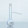 – Chất liệu: thủy tinh chịu nhiệt, trong suốt giúp dễ dàng ghi chú trên vùng nhãn rộng bằng men trắng và có độ bền cao. – Có đáy bằng giúp bình có thể đứng vững trên bàn mà không cần thêm vòng chân đế hoặc thêm giá đỡ – Là dụng cụ ý tưởng cho các ứng dụng có nhiệt độ cao bởi độ dày thành bình đồng nhất – Bình cầu đáy bằng thường có đường kính cổ từ 26 mm trở lên được gia cố thêm vành. |