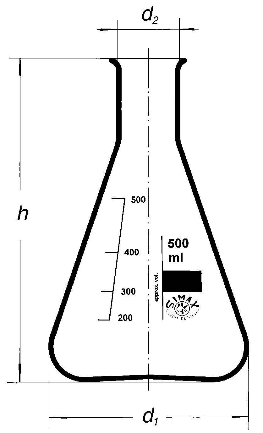 – Được làm từ thủy tinh borosilicate là một loại thủy tinh có khả năng chịu nhiệt và kháng hóa chất cao và được xác định theo tiêu chuẩn quốc tế ISO 3585 – Dễ dàng ghi chú trên vùng nhãn rộng bằng men trắng, độ bền cao. – Hình tam giác, phù hợp cho việc pha chế, thao tác hóa chất lỏng. – Dung tích: 1000ml; Đường kính dưới d1: 131mm; Đường kính trên d2: 42mm; Chiều cao: 220mm – Quy cách đóng gói: 10 cái/ hộp – Xuất xứ : Simax – CH Séc |