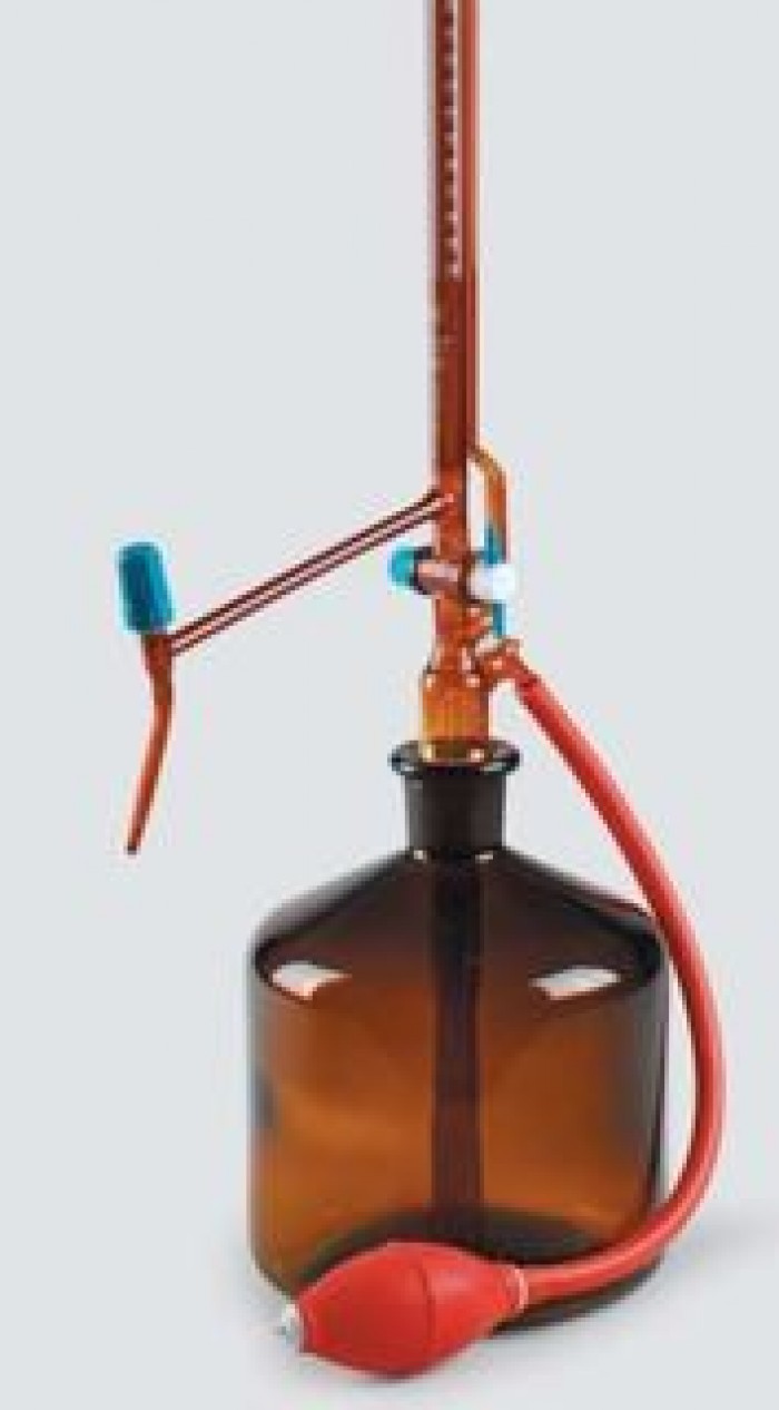 – Được làm từ thủy tinh borosilicate là một loại thủy tinh có khả năng chịu nhiệt và kháng hóa chất cao – Bao gồm: burette 50ml loại AS, bình chứa (2 lit) và quả bóp cao su. – Khóa thủy tinh đầu mài ở nhánh bên. – Thời gian chảy: 30 giây. – Dung tích: 50ml; Vạch chia: 0.1ml – Quy cách đóng gói: 1 bộ/ hộp – Xuất xứ : DINLAB – Đức |