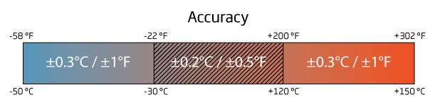 – Thang đo: -50.0 đến 150.0°C; -58.0 đến 302.0°F – Độ phân giải: 0.1°F (58.0 đến 199.9°F); 1°F (200 đến 302°F) – Độ chính xác: ±0.2ºC (-30.0 đến 120.0 ºC);±0.3ºC (bên ngoài: -50.0 đến -30.0 ºC and 120.0 đến 150.0 ºC) – Đầu dò: cố định, thép không gỉ fixed, 106 x ø 3.6 mm (penetration) – Pin: Khoảng 2000 giờ sử dụng liên tục – Nguồn: Pin Li-ion 3VCR2032 – Môi trường: -30 đến 50°C (-22 đến 122°F) – Kích thước: 50 x 185 x 21 mm – Khối lượng: 50 g |