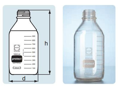 | 218055459 | Chai trung tính phủ PU, có nắp và vòng đệm GL 45 1000ml Duran |