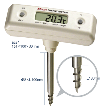 – Thiết kế phù hợp với địa hình gồ ghề – Đầu dò xoắn ốc với đường kính 8 mm. – Thời gian cảm biến nhiệt độ bình thường là 1s – Đạt tiêu chuẩn CE chất lượng châu Âu – Ống nhựa bọc ngoài bảo vệ đầu dò – Chống nước: IP 67. |