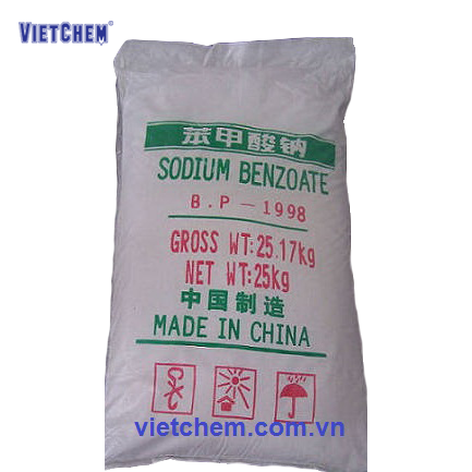 | Ứng dụng: | – Sodium benzoate là một chất bảo quản vì có khả năng tiêu diệt nấm mốc và vi khuẩn, thường dùng làm chất bảo quản trong các loại bánh kẹo, mứt, nước hoa quả, nước ngọt có gas, các loại nước xốt, súp thịt, ngũ cốc, sản phẩm từ thịt gia súc, gia cầm, thủy sản, nước chấm, sữa lên men, cà phê… Ngoài ra nó còn được dùng trong kem đánh răng, hóa mỹ phẩm, dược phẩm. – Được sử dụng rộng rãi nhất trong các loại thực phẩm có tính axit như trộn salad (giấm), đồ uống có ga (carbonic acid), ùn tắc và nước trái cây (acid citric), dưa chua (dấm), và gia vị. – Kìm hãm sự phát triển của vi khuẩn và nấm trong môi trường axit. – Là một phụ gia thực phẩm, sodium benzoate có số E E211. – Dùng trong pháo hoa như là nhiên liệu trong việc hoà hợp âm, một chất bột phát ra tiếng nổ khi nén vào ống và đốt cháy. |