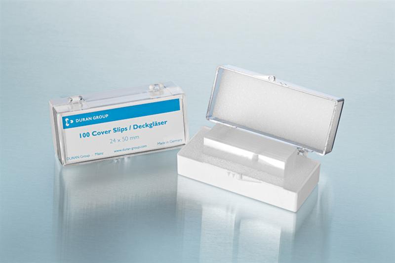 Phiến kính 24x50mm, dày 1.5mm Duran. Chất liệu: thủy tinh borosilicate. Màu trắng tinh khiết (D 263® M), không hấp thụ trong phạm vi quang phổ nhìn thấy . Có khả năng chịu hóa chất cao. Phù hợp với kính hiển vi huỳnh quang. Quy cách: 10×100