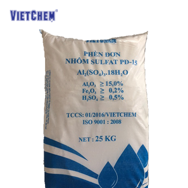 Phèn đơn Nhôm Sunfat Tên gọi khác: Aluminium Sulfate Công thức hóa học: Al2(SO4)3.18H2O Số CAS: 1310-73-2 Xuất xứ: Việt Nam Quy cách: 25kg/bao