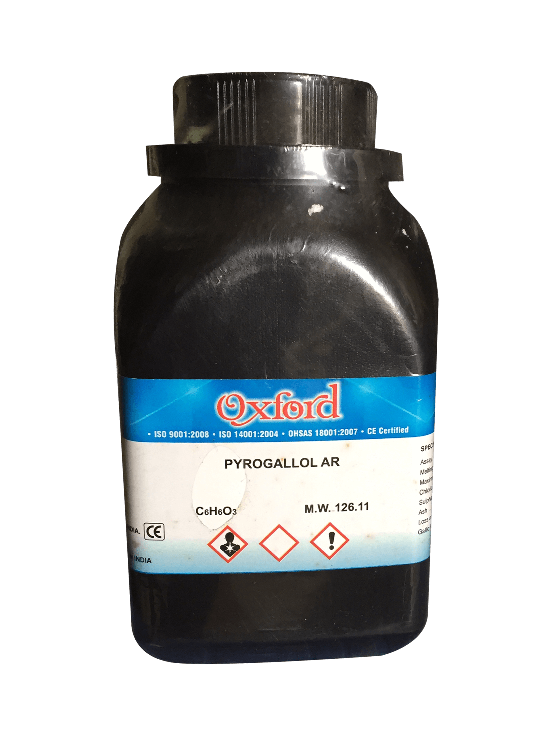Pyrogallol C6H3(OH)3 98.5% AR Ấn Độ. Là một chất rắn hòa tan trong nước, màu trắng. Sử dụng để phân lập khí trơ từ hỗn hợp khí, đòi hỏi phải hấp thụ oxy từ hỗn hợp. Sử dụng trong phòng thí nghiệm, trường học, phòng nghiên cứu, công nghiệp, ……