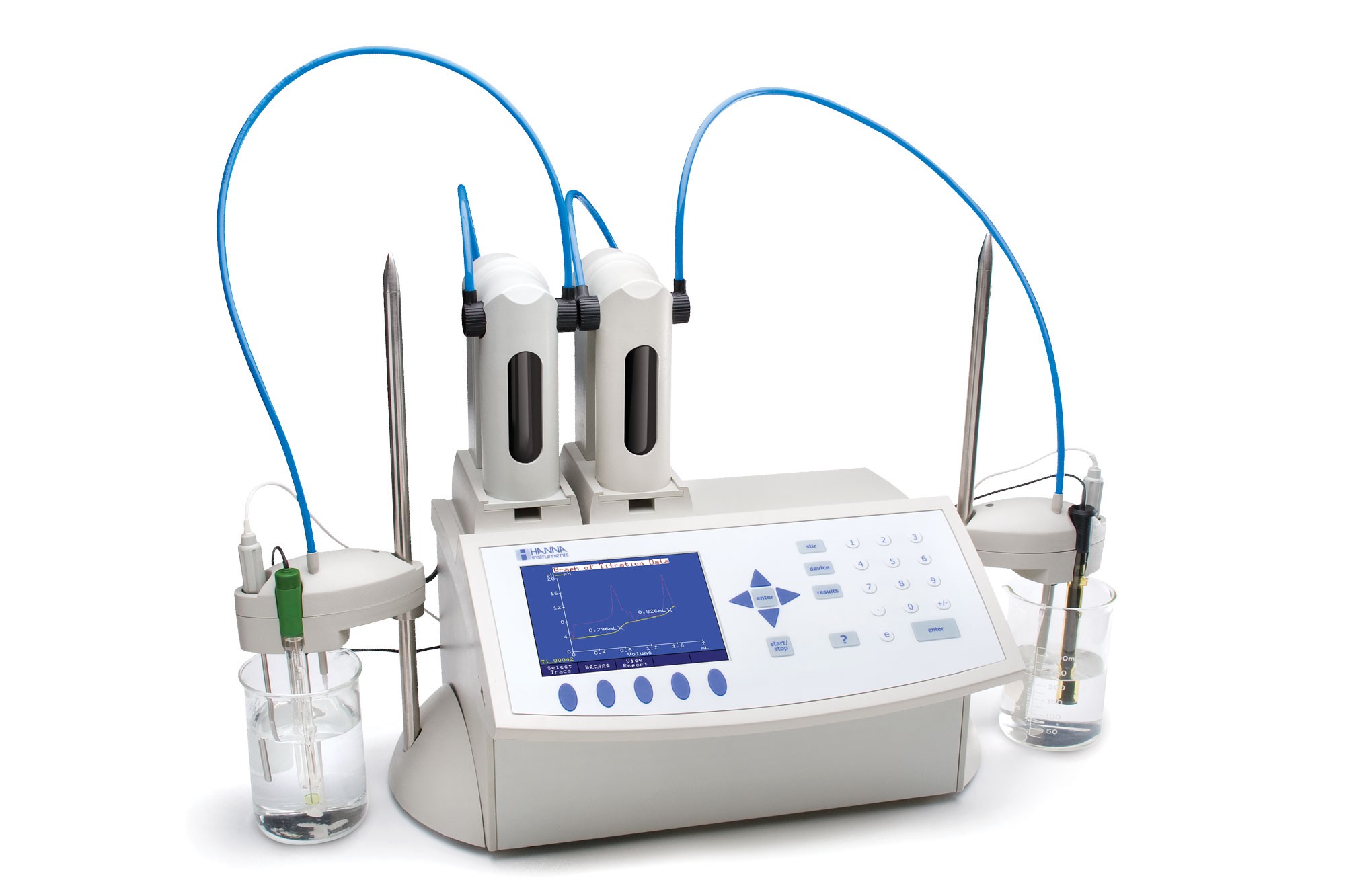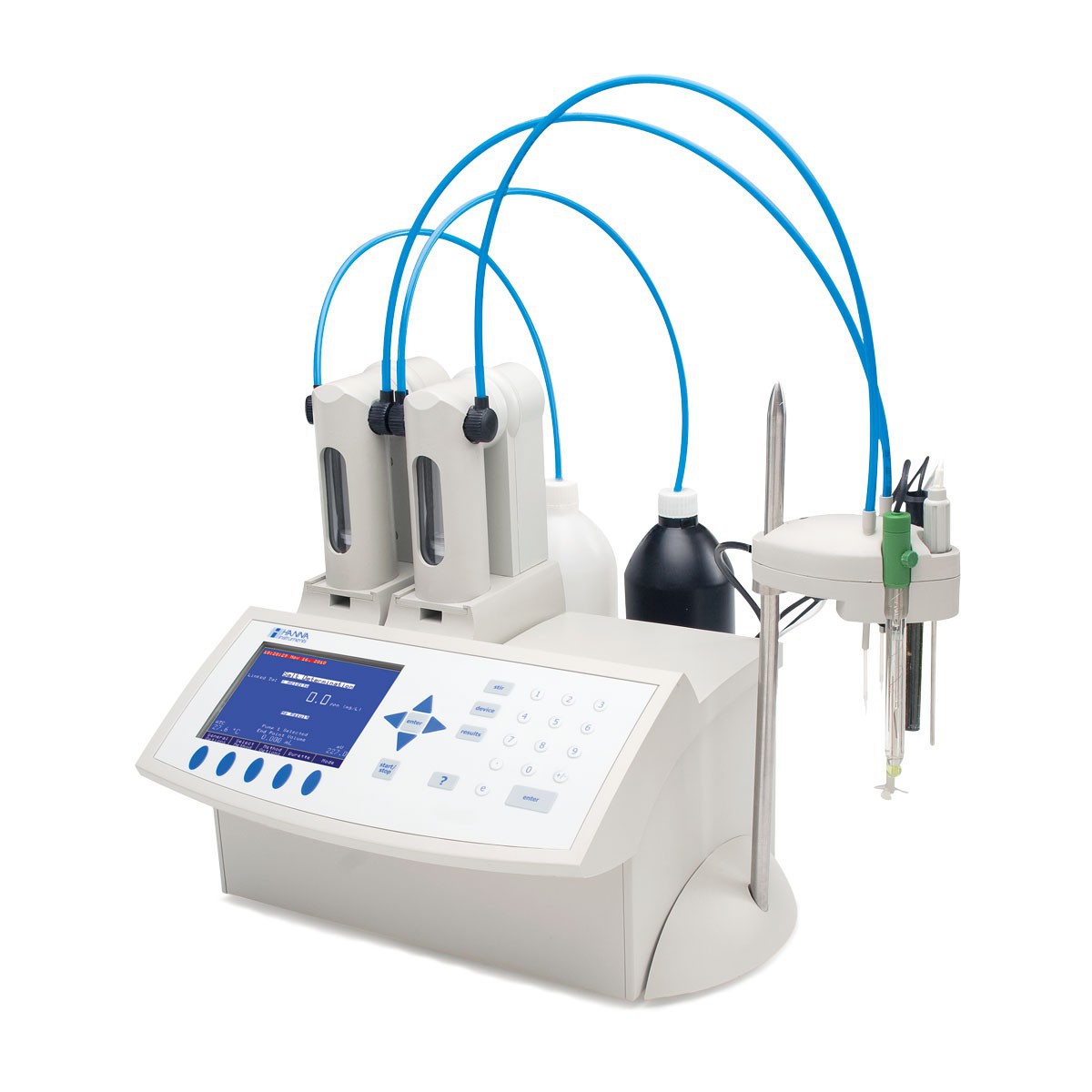 – Trong quá trình chuẩn độ, thiết bị này sẽ tự động phân phối hóa chất, xác định điểm kết thúc và thực hiện các phép tính toán, vẽ đồ thị.