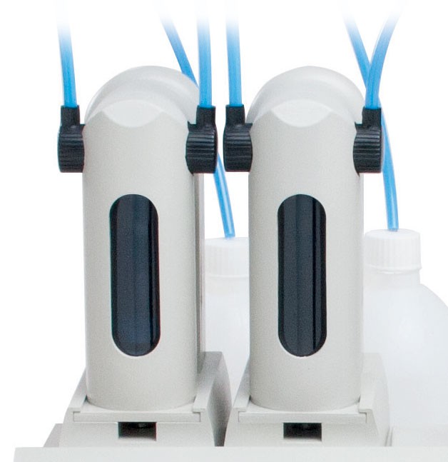 – Đường ống và xy lanh có độ bền hóa học: Hệ thống ống phân phối thuốc thử được cấu tạo từ vật liệu dẻo và có tính chịu hóa học cao PTFE, đồng thời xy lanh được gắn thêm tấm che ánh sáng làm từ polyurethane để bảo vệ các thuốc thử dễ nhạy cảm với ánh sáng.