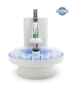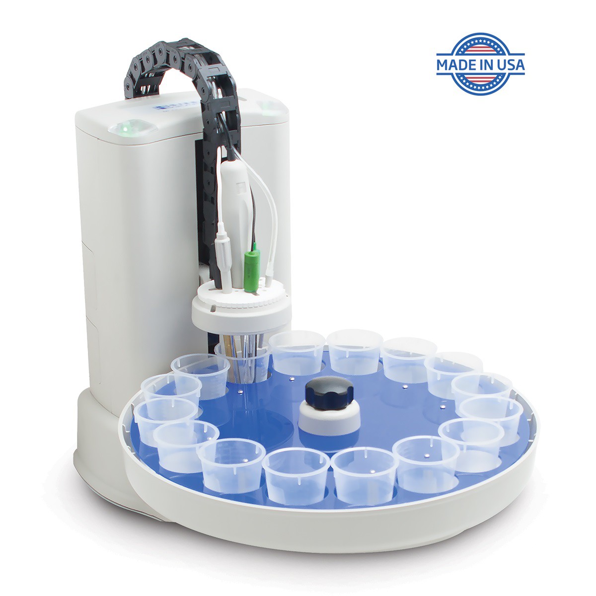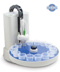 – Electrode Holder Slots: 3 x 12-mm electrodes, 1 temperature sensor, 1 aspiration tube, 5 multipurpose slots (titrant/reagent tubes), 1 overhead stirrer – Temperature Sensor: HI7662-A (included) – Khuấy: Khuấy từ hoặc khuấy bằng cánh khuấy – Bơm nhu động: Tối đa 3 cái – Bơm màng: 1 cái – Khay chứa mẫu: 16 cốc nhựa 150 mL (HI920-11660); 18 cốc nhựa 100 mL (HI920-11853). Tích hợp chức năng RFID, tự động nhận kiểu và serial của khay – Cốc nhựa: Tuân theo tiêu chuẩn ASTM short-form glass beakers, 16 cốc nhựa 150 mL (HI920-060), 18 cốc nhựa 100 mL (HI920-053) – Bảng điều khiển: Dùng để điều khiển giá đỡ điện cực, khay chứa mẫu và hoạt động của bơm – Máy quét vạch: Kết nối qua USB, dùng để tự động ghi tên mẫu – Lưu trữ báo cáo: Tối đa 40 khay. |
