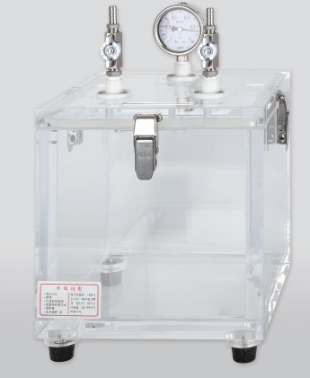 – Thân chính làm bằng vật liệu PMMA dày 20mm – Sử dụng Sillicon giữa bề mặt giữa thân chính và cửa để tăng độ kín – Trang bị 2 van chân không, đường kính ngoài Φ8mm – Độ chân không cho phép: 1 Torr |
